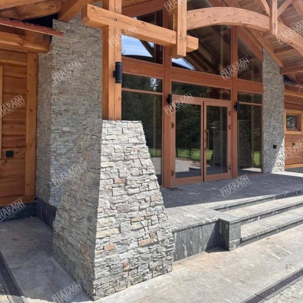 Декоративный камень Фараон поставляется в виде готовых панелей, состоящих из отдельных фрагментов натурального минерала, надежно соединённых между собой. За счёт различной толщины элементов поверхность приобретает выразительный рельеф и объемный 3D-эффект, создавая эффект натуральной каменной кладки. Материал отражает свет, что придаёт облицовке естественный блеск и глубину. Панели из кварцита и сланца подходят как для внутренней, так и для внешней отделки стен, колонн, каминов и фасадов. Они позволяют создавать современные и классические дизайнерские решения, визуально расширяя пространство и добавляя фактуру. Для наружных работ рекомендуется использовать защитные пропитки, повышающие устойчивость камня к влаге, морозу и загрязнениям. Панели легко монтируются, не требуют сложной подгонки и обеспечивают эстетичный, долговечный результат с выразительным объемным эффектом.