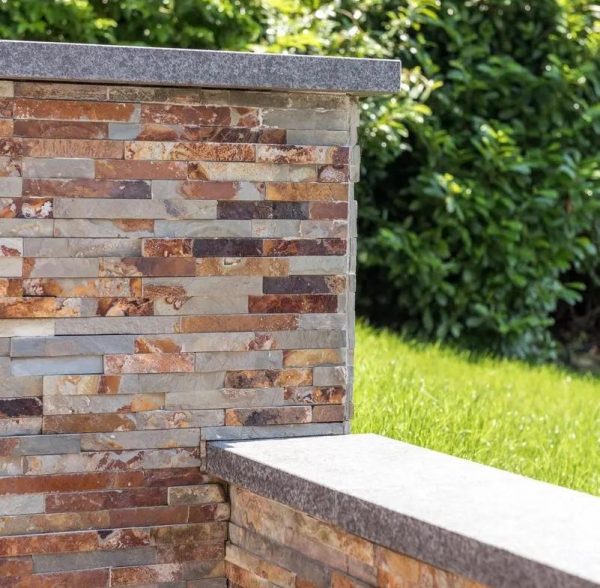 Декоративный камень Фараон поставляется в виде готовых панелей, состоящих из отдельных фрагментов натурального минерала, надежно соединённых между собой. За счёт различной толщины элементов поверхность приобретает выразительный рельеф и объемный 3D-эффект, создавая эффект натуральной каменной кладки. Материал отражает свет, что придаёт облицовке естественный блеск и глубину. Панели из кварцита и сланца подходят как для внутренней, так и для внешней отделки стен, колонн, каминов и фасадов. Они позволяют создавать современные и классические дизайнерские решения, визуально расширяя пространство и добавляя фактуру. Для наружных работ рекомендуется использовать защитные пропитки, повышающие устойчивость камня к влаге, морозу и загрязнениям. Панели легко монтируются, не требуют сложной подгонки и обеспечивают эстетичный, долговечный результат с выразительным объемным эффектом.